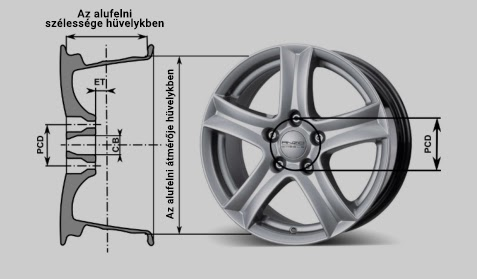 Alufelni szélesség Az alufelni szélessége hüvelykben (pl. 7,5) adott. Ha az „alufelni kereső” segítségével választ alufelnit, az alufelni szélessége eltérhet a forgalmi engedélyben található adatoktól. A gumiabroncs szélességére több alufelni szélesség mérete megfelelő. Az alufelni keresőben például, ha egy 7-es szélességű alufelnire keresünk, elképzelhető, hogy 7,5 szélességű alufelnit kínálhat. Felni átmérője Az alufelni átmérője hüvelykben (pl. 17”) adjuk meg és mindig azonosnak kell lennie a kiválasztott gumiabroncs átmérőjével. PCD – osztókör PCD (osztóköre) – a kerékcsavarok száma (5) x a csavarfuratok közepén átmenő képzeletbeli kör átmérője mm-ben (112). Az adat nem található meg a forgalmi engedélyben! Nem minden gépjárműre gyártanak pontos méretű osztókör alufelnit (pl. Alfa Romeo, Fiat), felszerelésre kerülnek univerzális méretű osztókör alufelnik megfelelő tartozékok segítségével (mozgókúpos csavar, anya). Középfurat (agyátmérő) Középfurat (agyátmérő) mm-ben (pl. 57,1) adjuk meg. Az adat nem található meg a forgalmi engedélyben! Ugyanúgy, mint az alufelni szélességénél az „alufelni kereső” az alufelni kiválasztásánál kissé enyhén eltérő átmérőt kínálhat. Ez az univerzális alufelnikre érvényes, a megadott átmérőt központosító gyűrűk segítségével éri el. ET – besajtolási mélység Besajtolási mélység, vagy középsík eltolás, az alufelni középvonala és a kerékagyra való felfekvési síkja közti (milliméterben, pl. ET 35) távolság. Eltérhet a forgalmi engedélyben megadott értéktől, de csak megengedett értékek közt. Minél magasabb az ET érték, az alufelni annál inkább „rámegy” a tengelyre. Minél kisebb az ET érték, az alufelni annál jobban kiáll az autóból (kiszélesíti az autót). Milyen méretű alufelnit szerelhetek az autóra? A helyes méret kiválasztásában segítségére van az autótípus szerinti alufelni kereső, illetve kollégáink is szívesen segítenek. Szoktuk javasolni, hogy a felni megvásárlása előtt a kiválasztott alufelnit próbálják fel a gépjárműre. |